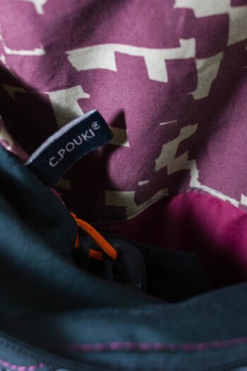 L’intérieur du sac, souvent très coloré, est doté de 2 grands compartiments, une attache pour les clés ainsi qu’une lampe de poche.